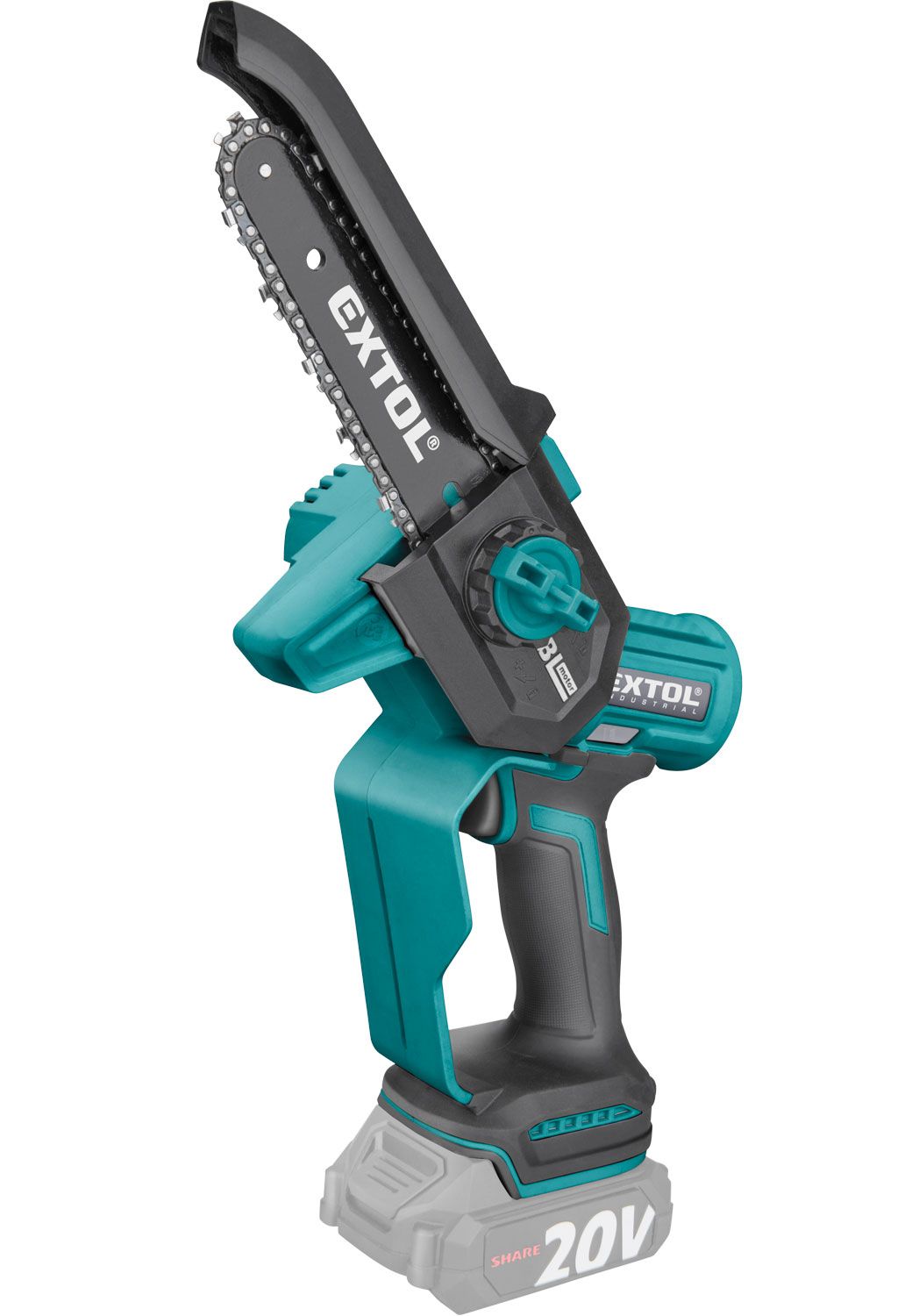 Az akkus láncfűrész az egy azonos Li-ion akkumulátorról működtethető SHARE 20 V akkus kéziszerszám család tagja.