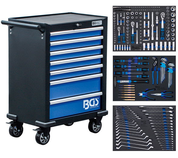 BGS Technic 9-4207 szerszámos szekrény, kék-fekete, 7 fiókos, gyári-felszerelt, 263 db-os