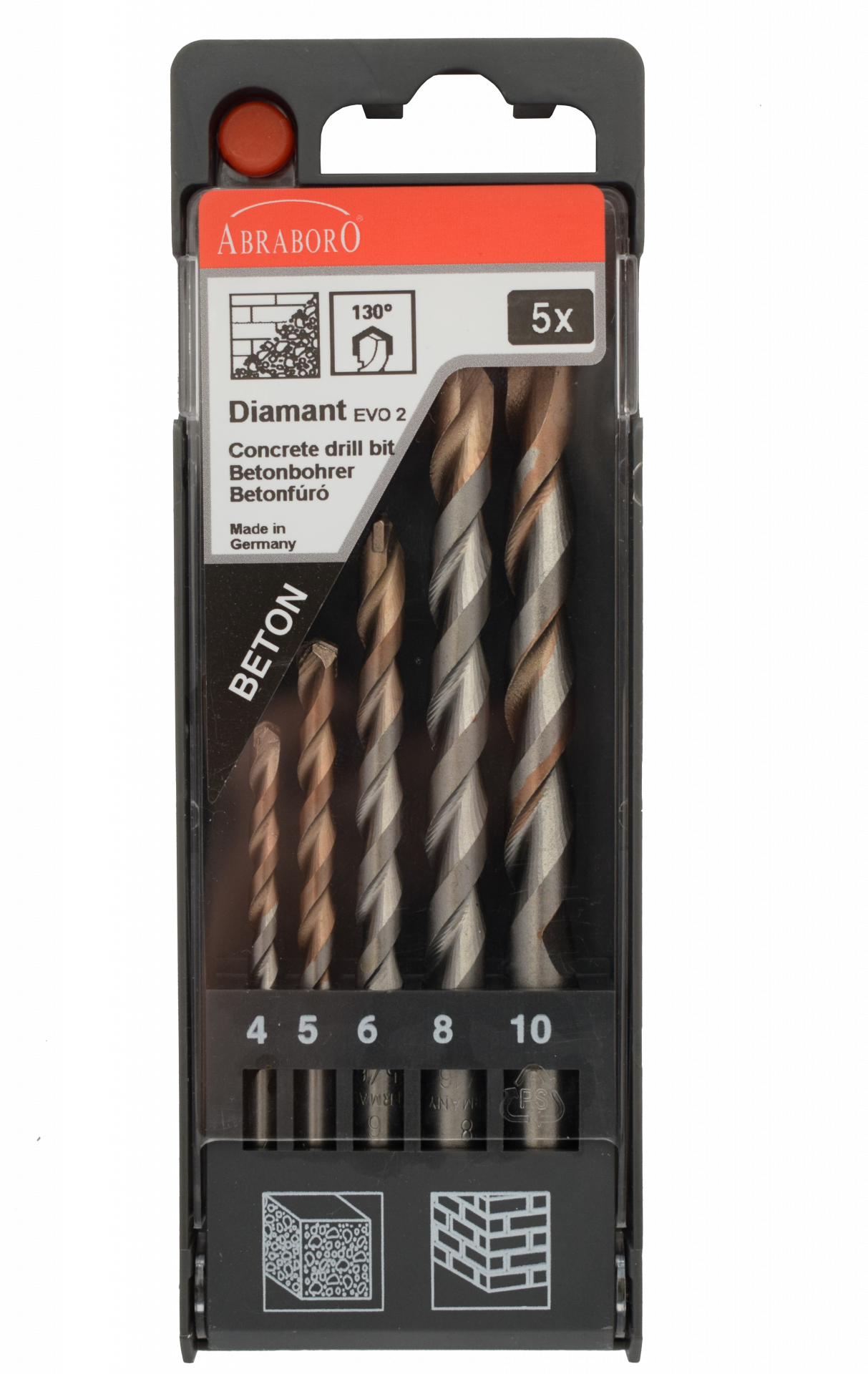 Abraboro Diamant EVO 2 betonfúró készlet, 5 részes, műanyag dobozban